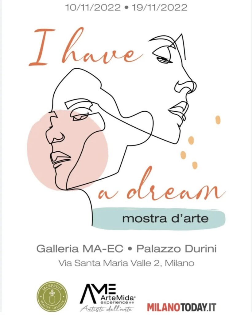 Obiettivo / Concept: “I HAVE A DREAM” è una mostra collettiva che propone una pluralità di linguaggi artistici contemporanei — pittura, scultura, grafica, installazioni, ecc. — riunendo artisti nazionali e internazionali. L’intento è offrire visibilità, promozione e una piattaforma di dialogo culturale, valorizzando la creatività come mezzo di espressione collettiva e personale.